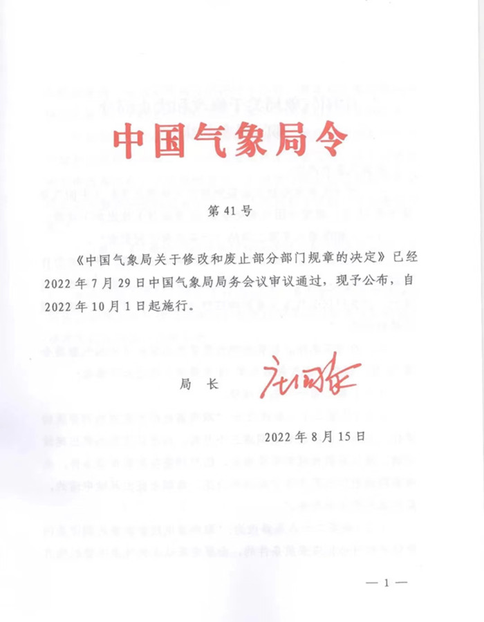 本決定自2022年10月1日起施行。《氣象專用技術裝備使用許可管理辦法》和《雷電防護裝置檢測資質管理辦法》根據本決定作相應修改,重新公布。