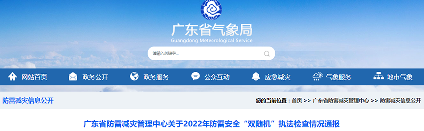 為切實加強全省防雷安全重點單位和雷電防護裝置檢測單位管理,壓實企業主體責任和屬地監管責任,廣東省防雷減災管理中心制定了《2022年度防雷安全“雙隨機”執法檢查計劃》,并在全省范圍內開展監督檢查?,F將檢查情況予以通報。