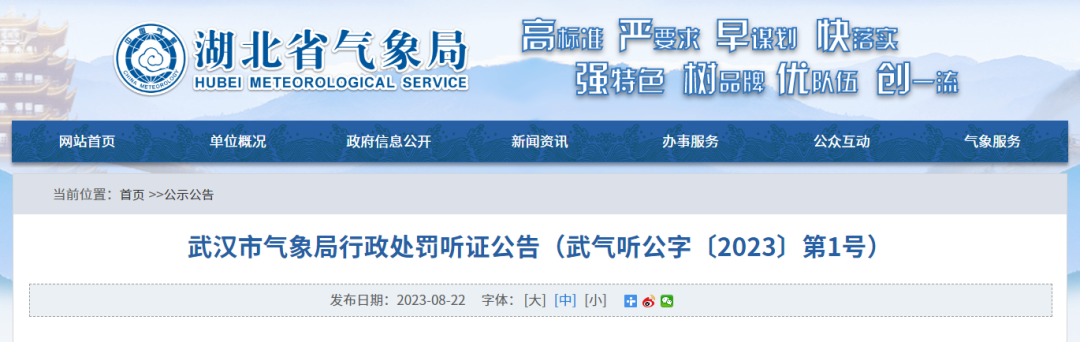 武漢市氣象局對遼寧信達檢測有限公司涉嫌在雷電防護裝置檢測中弄虛作假案舉行公開聽證,現將有關事項公告如下: