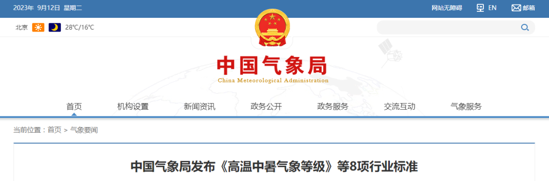2023年9月5日,中國氣象局批準《高溫中暑氣象等級》等8項氣象行業標準發布。本批標準是今年發布的第二批,涉及觀測、數據、氣候可行性論證、防雷等領域,將于2023年12月1日實施,詳見下表。