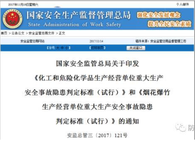 2017年11月國家安全監(jiān)管總局印發(fā)《煙花爆竹生產經營單位重大生產安全事故隱患判定標準(試行)》,明確規(guī)定防雷設備設施缺失或者失效列入煙花爆竹生產經營單位重大生產安全事故隱患判定標準。