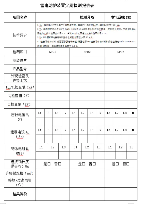 SPD的最大持續工作電壓Uc低于電網可能出現的最高持續運行電壓;電壓保護水平Up高于被保護設備的耐沖擊電壓Uw;能量配合不當(級間未配合或配合錯誤);SPD已劣化(窗口變色、遙信報警)或明顯損壞(燒毀、炸裂)未及時更換;關鍵配電箱(如總柜、分配柜、設備前端)未安裝SPD但檢測報告體現(虛假安裝);SPD的接地線截面積不足(Ⅰ級試驗≥16mm2,Ⅱ級≥6mm2,Ⅲ級≥4mm2銅線);SPD前端未安裝匹配的后備保護裝置(熔斷器、斷路器)。