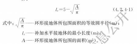 3.1對環形接地體所包圍面積的等效圓半徑小于5m時,每一引下線處應補加水平接地體或垂直接地體。當補加水平接地體時,其最小長度應按本規范式(4.2.4-1)計算;當補加垂直接地體